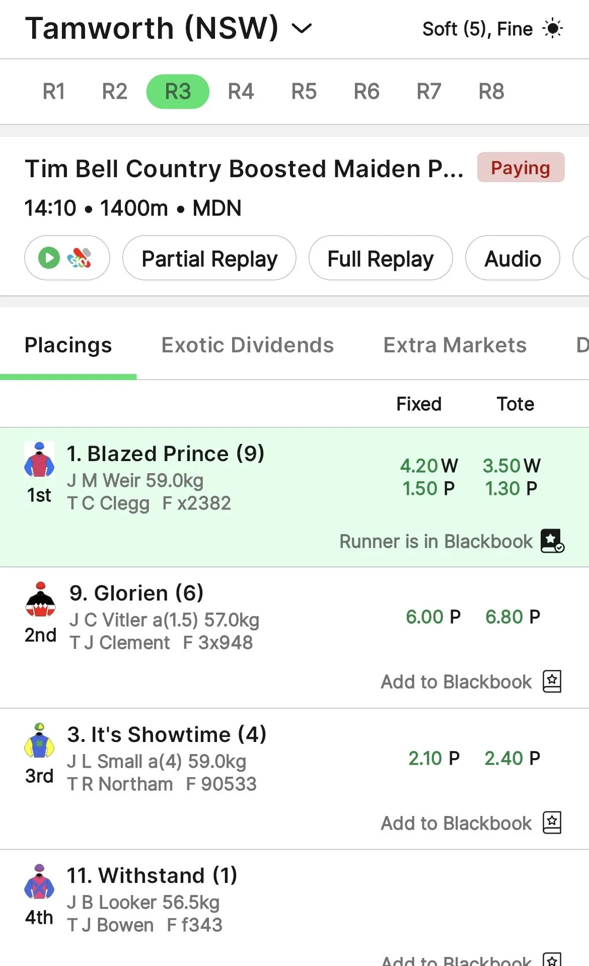 R10 10 out of 10 ride by Jason Collett keeping world alliance interested in the early stages and that was the winning move Spring lee Forget the run didn’t see the 1200 m out!! Invader zim didn’t appreciate being back on dry ground look for him on wet.